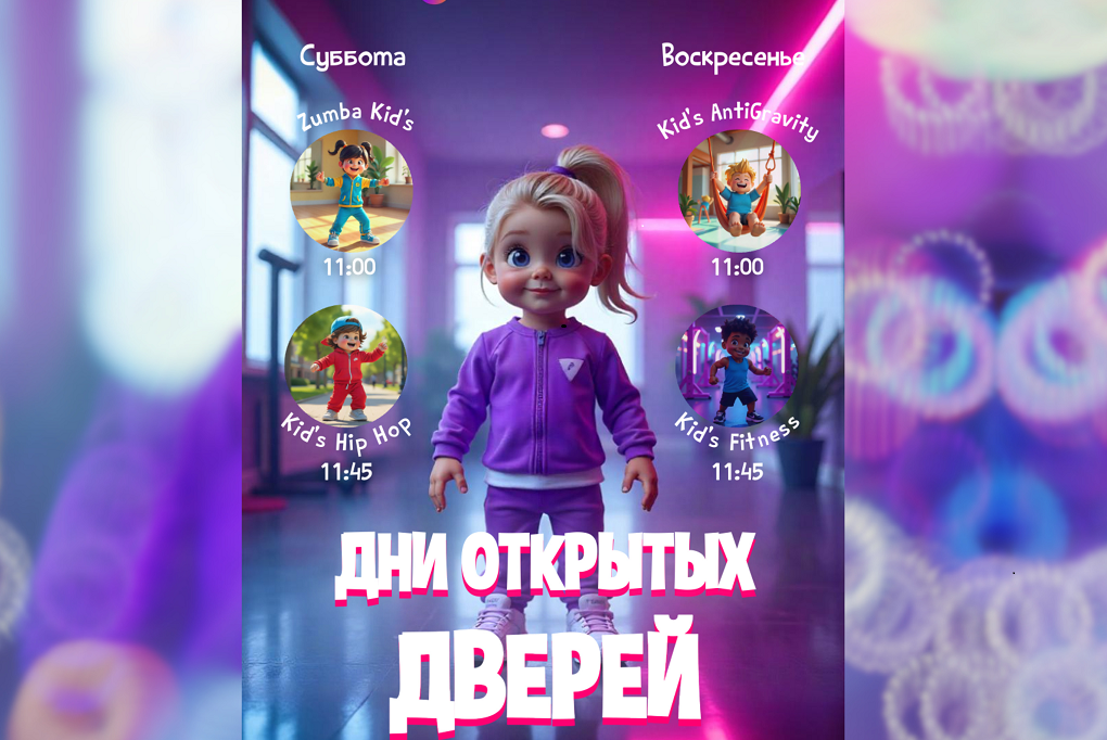 13-го и 14-го СЕНТЯБРЯ приглашаем на БЕСПЛАТНЫЕ открытые уроки в детских секциях: Zumba Kid's 5+, Kid's Hip Hop 4+, Kid's AntiGravity 5+, Kid's Fitness 4+.